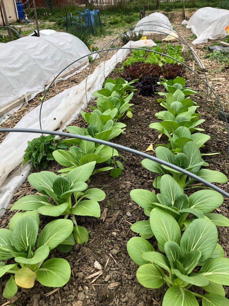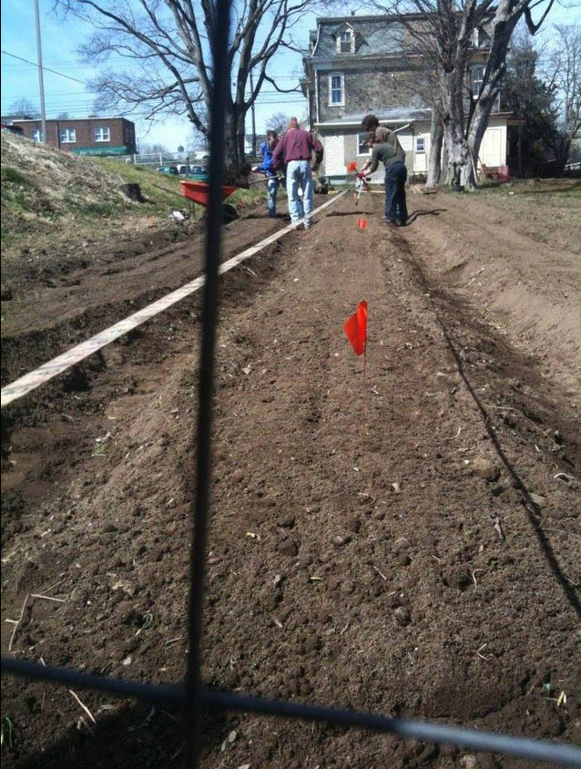 Werner’s Garden is roughly 100×100 ft. or, a 1/4 acre. The initial tilling and layout established 40 garden plots sized approximately 3×15′. The group constructed a wooden pallet structure to collect garden waste for composting, and water was (and is) generously supplied by the property owner.