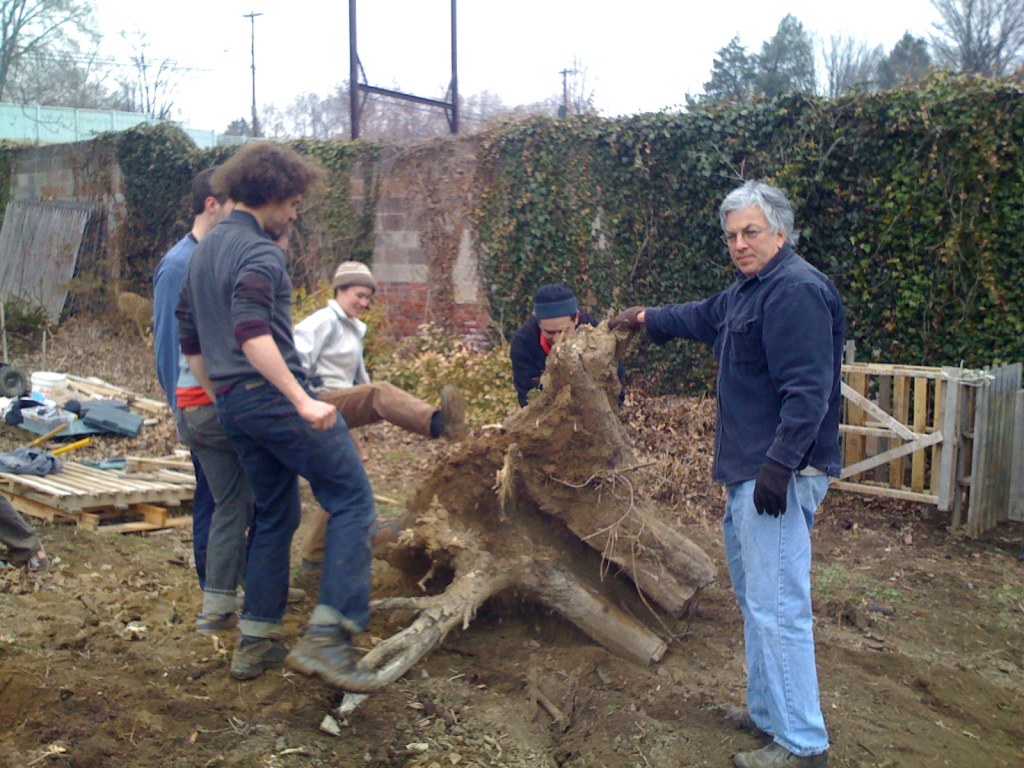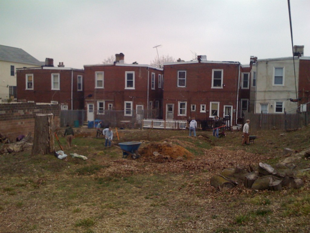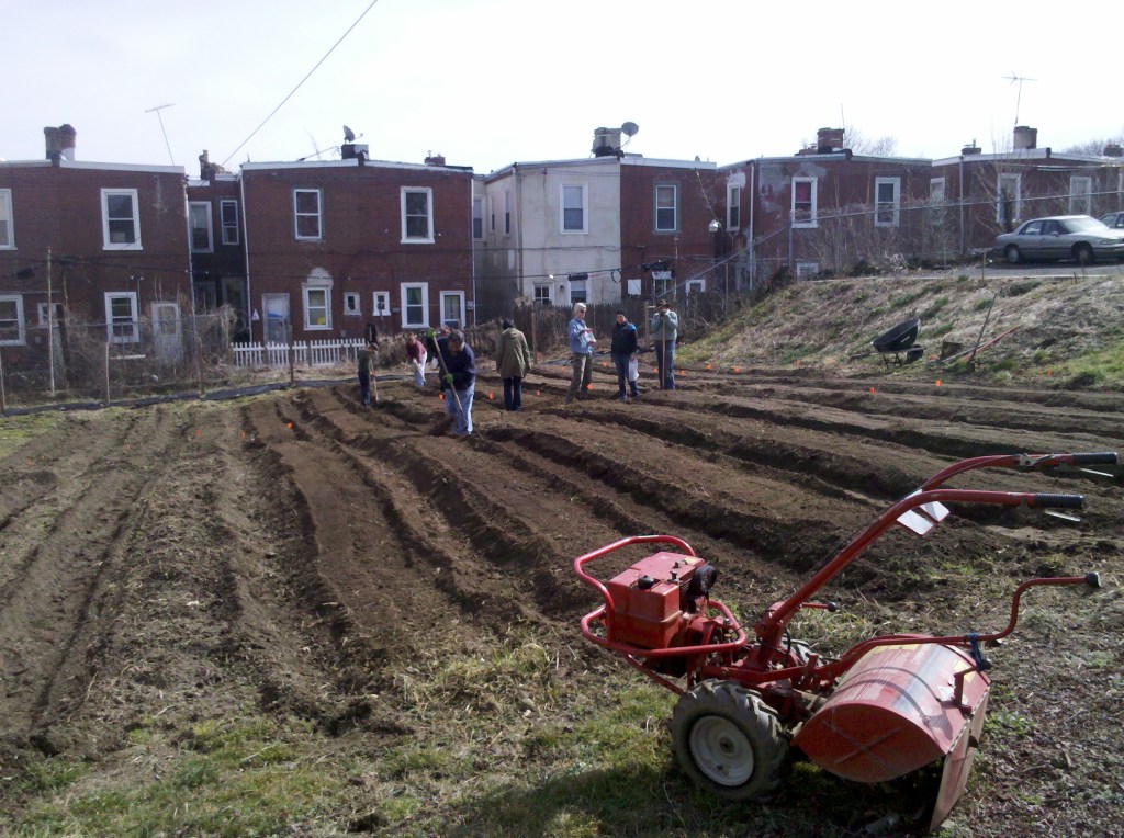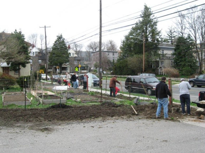The East Mt. Airy Community Garden Network consists of two gardens, Werner’s Garden near Fred’s Motors on Mt. Airy Avenue and Gabbie’s Garden near the intersection of Mt. Airy and Chew Avenues. In 2011, the group of gardeners who helped establish both these gardens created a Facebook group. Photos from the Facebook page show the beginnings of both community gardens.